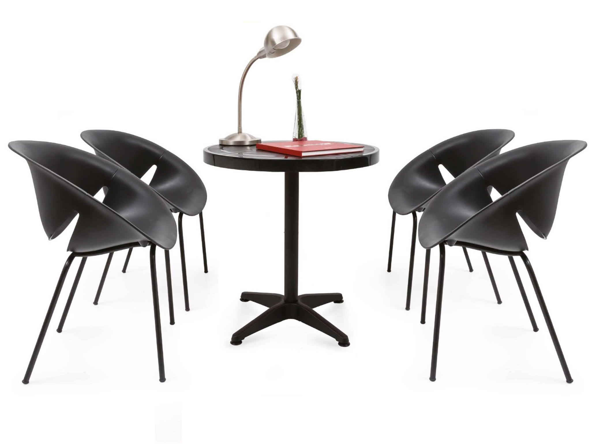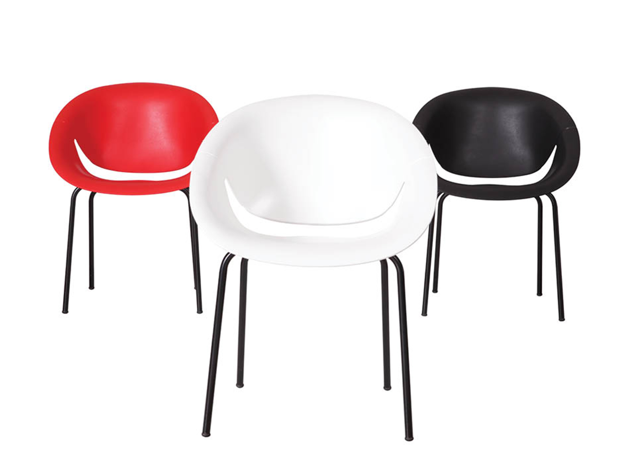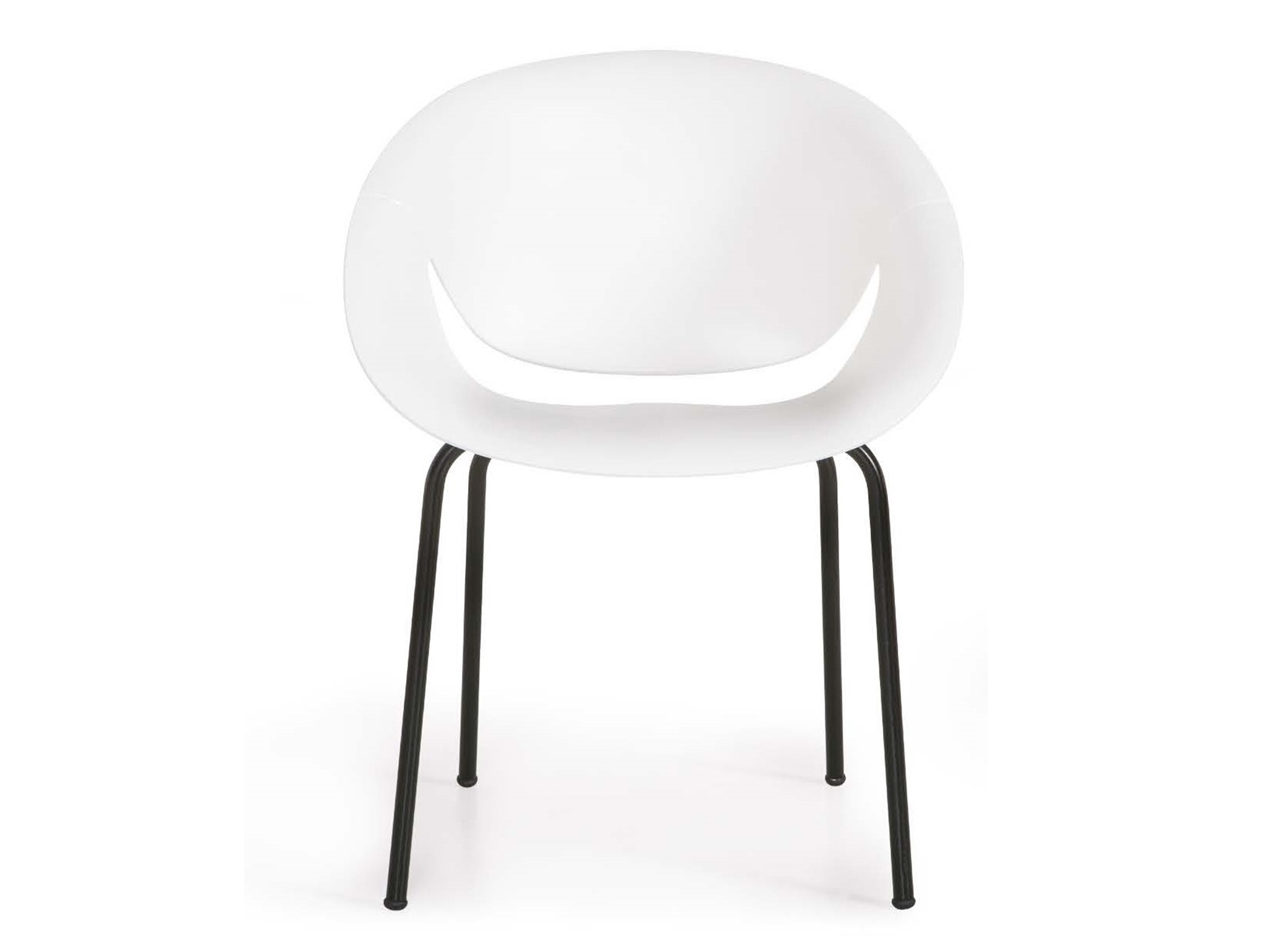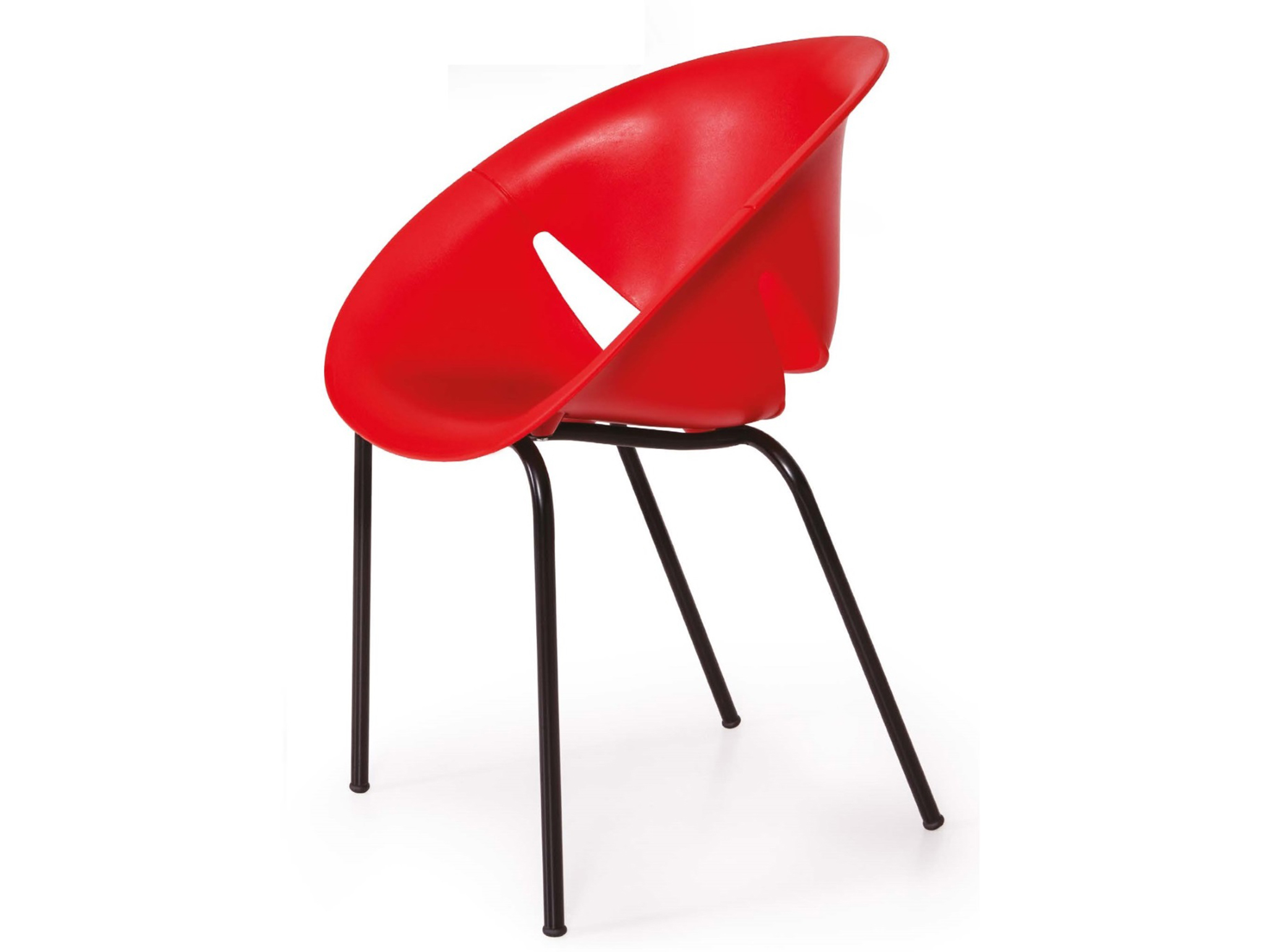 Stacking chair with polyproplene shell and painted steel legs. Comes with matt surface. For indoor and outdoor use. Suitable as office chair and clothing.