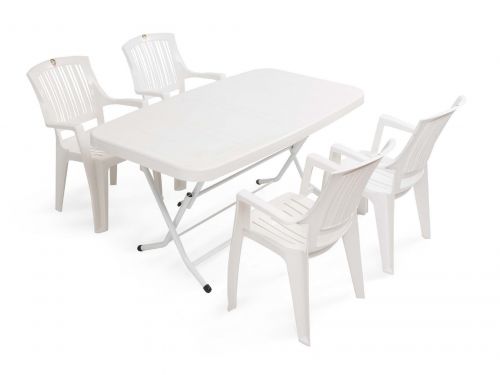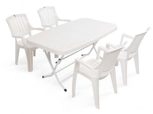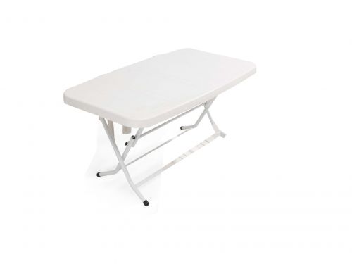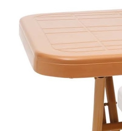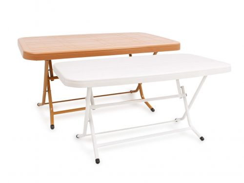 Polypropylene top table comes with epoxy painted metal folding leg. Open when you use it, close and store when you do not. Durable, weather resistant. Suitable for indoor and outdoor use. Enjoy your garden with big easy-to-use table.