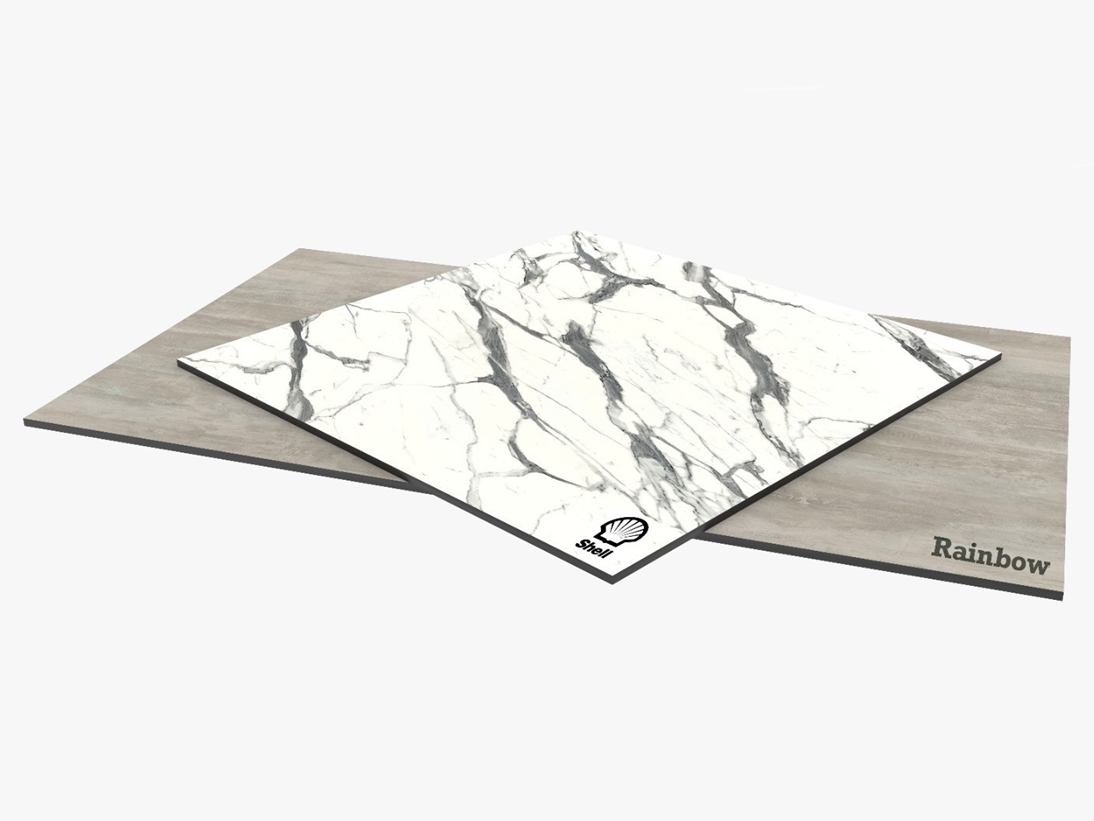 HPL is produced by saturating multiple layers of kraft paper with phenolic resin. A layer of printed décor paper is placed on top of the kraft paper before pressing. The resulting sandwich is fused together under heat and pressure (more than 1,000 PSI). Because phenolic and melamine resins are thermoset plastics, the curing process transforms the resin into plastic by a cross linking process that converts the paper sheets into a single, rigid laminated sheet. Thermosetting creates strong, irreversible bonds that contribute to its durability.